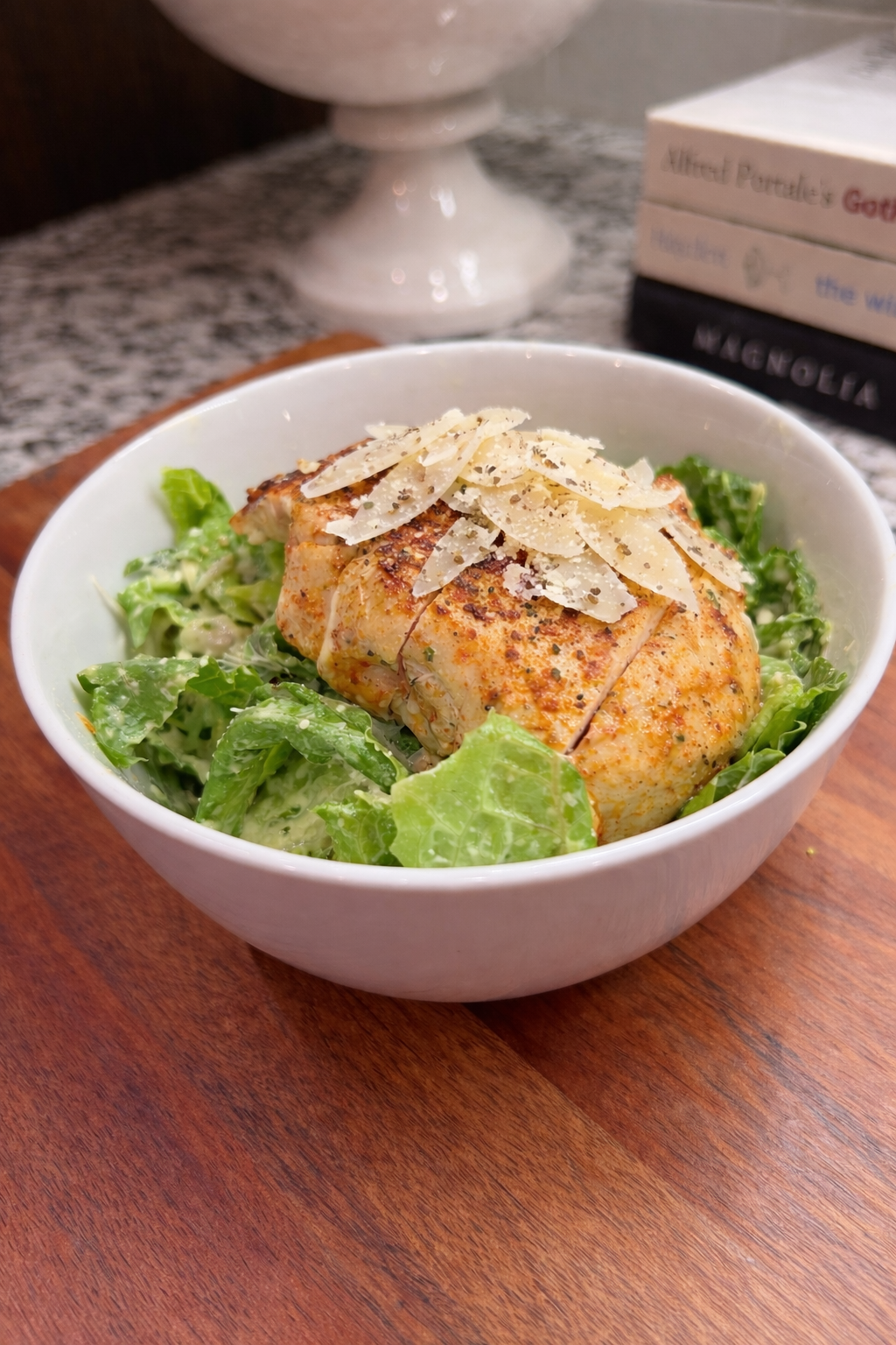 The greens are cold and crisp. The dressing is sharp, not heavy. The parmesan adds just enough salt to carry everything through. Nothing is overdressed, and nothing is left flat.
